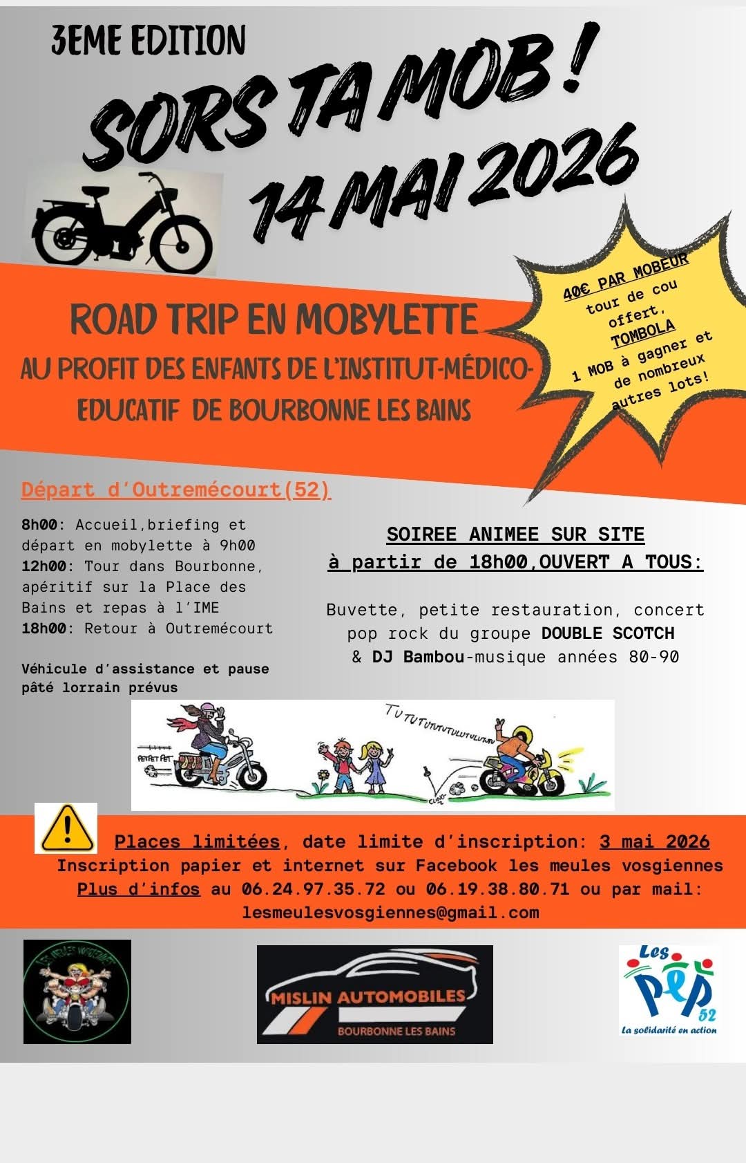 Participez à la 3ᵉ édition de Sors Ta Mob, la grande balade solidaire en mobylette au profit des enfants de l’IME Château Renard de Bourbonne‑les‑Bains.